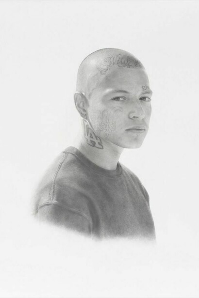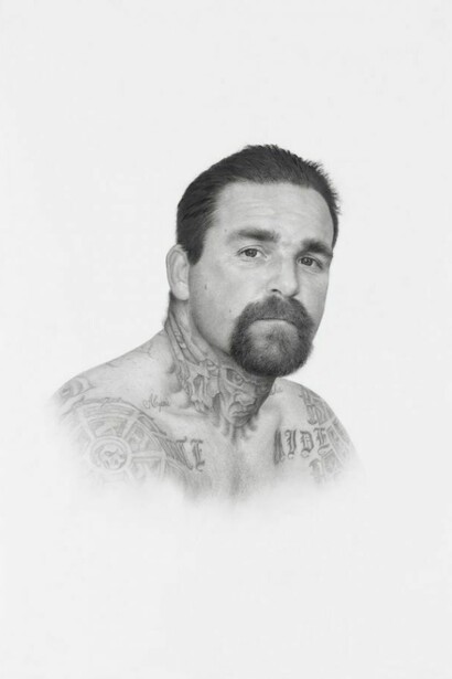 Lee opens an inquisitive dialogue with the hyper-masculine visages of these men, studying behavioral patterns and intricate symbols of identity, and exploring the ways that these men communicate and amplify their projected self-images, the armor that protects and codifies them on the street, in their gangs, and in prison. The subjects are individuals with pride, stoicism, strength, and hostility, but Lee focuses his attention on their gaze and expression, moving beyond their often forbidding physical exteriors to expose their humanity, revealing their underlying light, warmth, and vulnerability. Lee’s devotion to the observable world and to human sentiments is manifoldly evident in his work. The artist is able to make these men – reticent in the real world – approachable to the viewer in a way that is daringly captivating. Moving beyond the hostility the subjects might project in real life, Lee gives the viewer a moment, undeterred by fear, to witness, contemplate, and relate with the subjects over the common truth of projected and perceived identities.