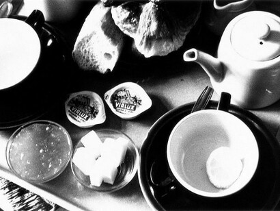 Circulation: Date, Place, Events was first exhibited in 1971 as part of the Seventh Paris Biennale. Each day, for seven consecutive days Nakahira photographed, developed and exhibited approximately one hundred photographs. The photographs are random glimpses from Nakahira’s daily activities in Paris, including strangers’ faces, produce stands, subway platforms, street posters and even his breakfast setting. Developing the photographs each night, Nakahira exhibited them without omission the following day. Once the walls of the exhibition space were crowded with photographs, the artist spread them onto the floor. The resulting project presented a limited reality dictated by guidelines of “date,” “place” and “events.” Following an argument with event organizers, Nakahira cut his project two days short. A few years later, in a dramatic break with his past work, Nakahira burned most of his earlier negatives and prints. For unknown reasons, the negatives of Circulation: Date, Place, Events were preserved.