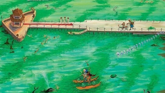 There is also the cheeky “Bad Eggs (Meddling Eggs): Little Brother” that portrays a Yao Ming-esque character with his pants down, the underwear resembling Beijing’s CCTV Tower, which is nicknamed “Big Pants.”