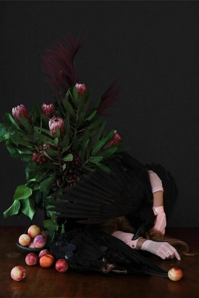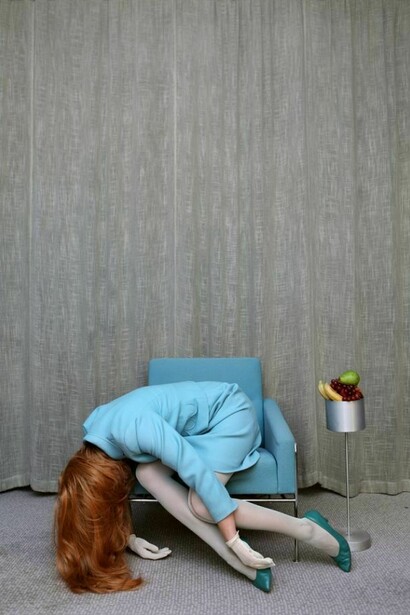 The stories are loosely told leaving room for interpretation, and although it is mostly fiction this time, " there will always be a bit of me in them" she says, believing that private experiences helps to create universal statements. She often multiplies myself, to look at inner conflicts or the contrast between what we show and who we are. The images possess an eerie, unreal quality, combining tragedy with humor. "We have a tendency to cover up our flaws and decay, hiding all the ugliness of life and I try to have a bit of humor about it."