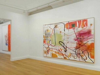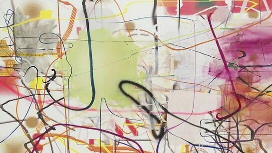 Albert Oehlen’s Bild und Auge (Picture and Eye), 1996-2000 illustrates the artist’s preoccupation with the theme of painting. Created through computer-assisted design, the boldly coloured lines simulate traces of movement, which reveal against a white picture plane the structures of painting often masked by the surface layers of paint. The computer serves to heighten the artist’s deliberate strategy of complication, where chance and chaos reign in equal measure, and to distance the artwork from established genres of painting. Eschewing categorisation, Oehlen’s Picture confuses the Eye of the viewer and positions itself as antithetical to the over simplification of imagery and meaning in contemporary society.