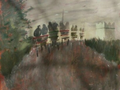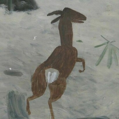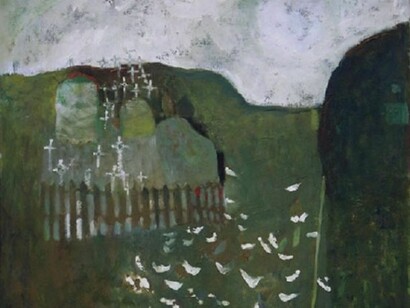The simplicity of Newcomb’s style gives her art an immediacy, which should not be confused with naivety. The explanatory way in which Newcomb titles her paintings, for example, These sheep find it necessary to cross the bridge, further illustrates that her aim is to capture moments and memories rather than to ‘create art’.