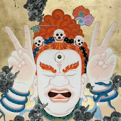 Born in 1968 in Kathmandu, Tsherin Sherpa lives and works in California. Sherpa studied traditional Tibetan thangka painting from the age of twelve under the guidance of his father, Master Urgen Dorje, a renowned thangka artist from Ngyalam, Tibet. After six years of intense formal training, he left to study Mandarin and computer science in Taiwan. Three years later, he returned to Nepal working with his father in numerous projects that included painting thangkas and monastery murals.