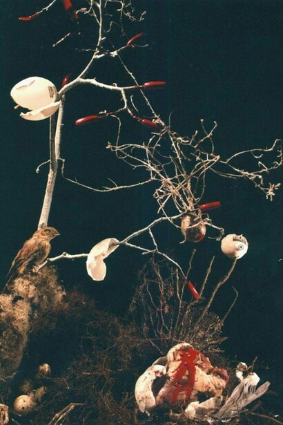 This exhibition which leads us on a voyage through the intricacies of the human mind, also takes us on a journey around the world of plants to the heart of distant countries. Foremost to the Land of the Rising Sun where ikebana, the art of flower arranging, symbolises the linear harmony between the sky, the earth and mankind.