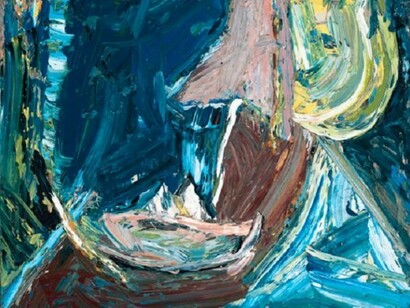 The exhibition starts with work from 1978 that is totally abstract and with these repetitive mark laden and overall compositions Pesce serves notice with a palette that provides a visual compass for his entire career. The 1980's mark a shift as Pesce began painting lush expressionist faces that show his developing virtuosity.