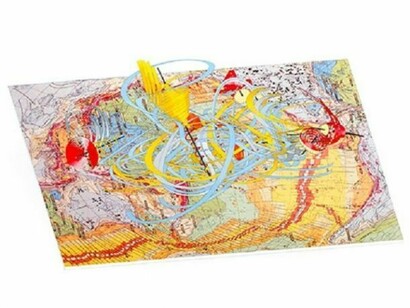 “Aycock is an artist who thinks on paper,” writes Terrie Sultan in the catalogue introduction. “Her spectacular drawings are equal parts engineering plan and science-fiction imagining. As in all of her work, fantastic narrative writings weave in and out of her images, inspiring her production of sculptural objects, drawings, and installations.”