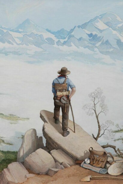 There is no real beginning or end to the work; it’s just a continuing journey. You rely on a deep well of ideas to take you further on, closer to the edge of the world, through the maelstrom and what Herman Melville described as ‘that howling infinite’. The paintings imagine those journeys where humanity is pitted against the great forces of nature: travellers trying to make sense of what lies ahead, the prospector looking for fortune, the naturalist on a distant shore or the Bounty’s mutineers escaping to the edge of the earth in their search for paradise. For all of them, for all of us, the marvel is the view into infinity which these journeys afford, the universe glimpsed through a break in the clouds or the chance encounter with a comet’s endless voyage; or through those internal journeys: secrets decoded in a mathematician’s scribbled formulae or an artist sitting in contented solitude trying to draw the perfect circle. - Barry McGlashan 2013