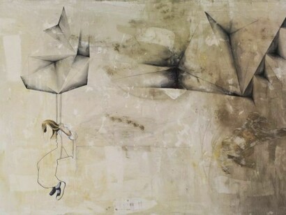 It is challenging to interpret his work, because the viewer is often confused by the change of surface perception. The interplay between the figurative and the abstract may not be limited to one interpretation. Like the work "Your Thick Elephantine Yet So Delicately penetrable Skin" (2011), depicting a girl on a swing. The swing is fitted with a geometrically patterned background and is therefore connected with a surreal element.