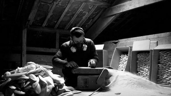 In Complex System (series x 4) (2013), cuttlefish bones are cut to conform to their underlying geometry of elongated hexagonals and assembled to form a perfect minimalist work in minutely varying shades of white, obliquely referencing Robert Ryman’s ‘white’ monochrome paintings of the 1960s. The growth rings function like naturally generated ‘brush marks’. The substance of the sea creatures has been transformed into a perfect artefact of twenty-first century conceptual minimalist art.