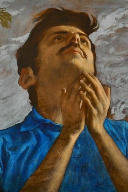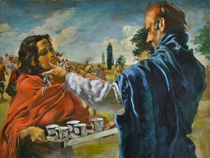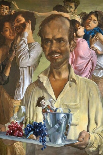 Similarly, poverty oscillates between caricature and reverence in The Happy Servant, while The Happy Sweeper brushes away in a sentimental Disneyland of daisies and four-leaf clovers. In both works, one senses the inherent isolation of the central figure in an otherwise carelessly jubilant gathering or classically-inspired milieu. Further emphasizing this skewed reality in both works are the subjects’ frozen smiles, which exude a foreboding quality slithering under a skin of frivolity.