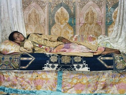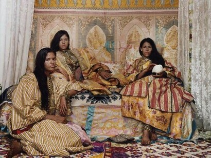 “The physical harem is the dangerous frontier where sacred law and pleasure collide. This is not the harem of the Western Orientalist imagination, an anxiety-free place of euphoria and the absence of constraints, where the word “harem” has lost its dangerous edge. My harem is based on the historical reality; rather then the artistic images of the West – an idyllic, lustful dream of sexually available women, uninhibited by the moral constraints of 19th Century Europe.” Lalla Essaydi, 2010