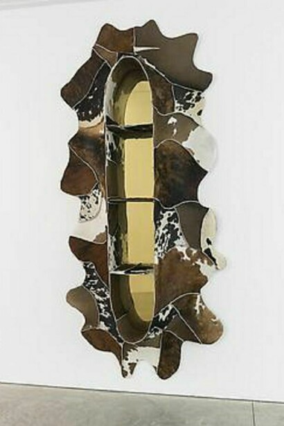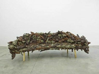 The new works for Concepts include the Boca (Portuguese for “mouth”) series--new works in cowhide including a wall-mounted bookshelf, table, and standing shelf; the Racket collection--chairs and a screen in bent brass with a nylon stitched base and a hand-stitched motif made from remnant Thonet chair backings; Fitas (Portuguese for “stripe”)--a buffet, cabinet, and table made from bent steel; Pirarucu -- a cabinet made out of the sustainably harvested tanned and leathered skin of the Brazilian Pirarucu, the world’s largest fresh water fish; and the Ametista collection--a series of glass hanging panels adorned with Sao Paulo-sourced amethyst rocks. Concepts will also include a new sofa and chair created out of a series of life-like stuffed alligators made by OrientaVida, an NGO that employs underprivileged women.