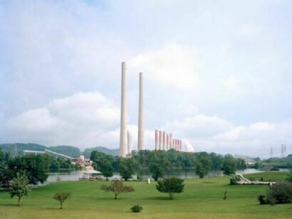 The flat landscape of Texas is seen in Peter Sekaer’s 1939 print of a billboard in Amarillo. The art deco sign advertises the Amarillo Hotel for $1.50 to $3.00 a night. Joel Meyerowitz made a number of road trips to the South. His 1963 image Signs in the South, 1963, shows signs for “strawberry’s” as well as Coca-Cola (“Enjoy That Refreshing New Feeling”) and “patent medicine.” Caroline Allison, an emerging artist based in Nashville, photographed the TVA Kingston Fossil Plant in 2010. The coal-burning power plant, located just outside Kingston, Tennessee, was the scene of a 2008 spill, which damaged 300 acres of surrounding land.