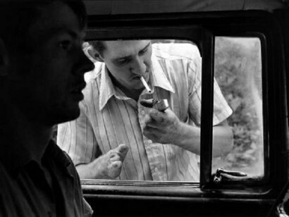 William Gedney made two trips to Kentucky, in 1964 and 1972. He stayed in the home of the head of the local mining union in Leatherwood, a town where most of the residents worked in the mines. His 1972 gelatin silver print of a young Kentuck man in a pickup truck in Kentucky depicts what could be the beginning of a hard life. Robert Frank’s 1950s print Teenagers in Tennessee – They Drive the Car shows a happier time, while a pensive young boy peers into a dilapidated barn in The Old South, #2, c. 1954-55, by Ralph Eugene Meatyard.