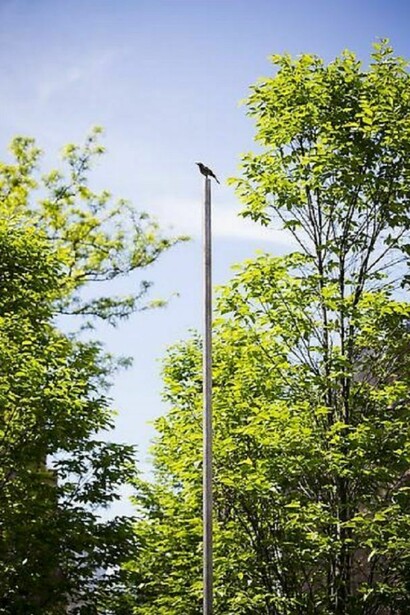 Art Production Fund (APF), White Cube and Lehmann Maupin, in cooperation with NYC Parks & Recreation, are pleased to present Roman Standard (2013), by Tracey Emin on view from May 10 to September 8 at Petrosino Square at Spring and Lafayette Streets in New York. Roman Standard features a single bronze bird perched on top of a thirteen-foot pole that rises over the park.