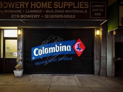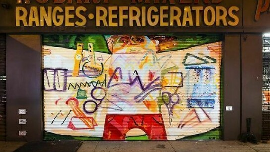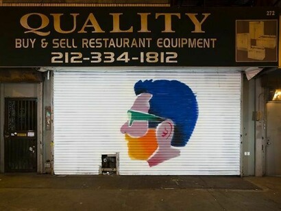 Art Production Fund (APF) and the New Museum are pleased to present “After Hours 2: Murals on the Bowery” in conjunction with the 2013 Ideas City Festival. For the second edition of this popular and critically acclaimed public art project, APF selected fourteen artists and one artist from an open-call submission to design site-specific murals for the steel roller shutters of commercial supply shops lining the Bowery, between East Houston and Grand Streets. “After Hours 2: Murals on the Bowery” celebrates the legendarily vibrant downtown cultural community and aims to reinstate the sense of freedom and accessibility that originally drew artists to the area. Each mural is a response to the neighborhood in its historical and contemporary context.