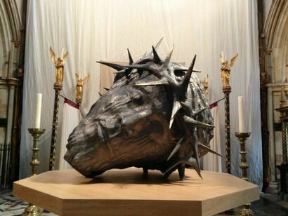 Sladmore Galleries present full splendour of Nic Fiddian-Green sculpture. Dominating Feature ‘Christ Rests In Peace’, 8 foot high, with savage crown of thorns, cast in lead, finished in gold leaf, expresses a spiritual element at the heart of Nic Fiddian-Green’s work. First seen in Southwark cathedral during Lent and Holy week, Christ Head will make a compelling impact in the window of the Sladmore gallery in Jermyn Street.