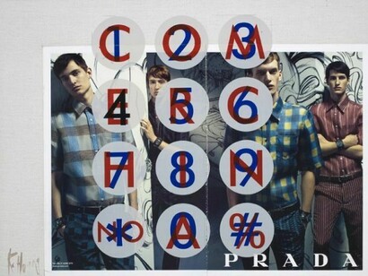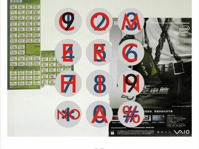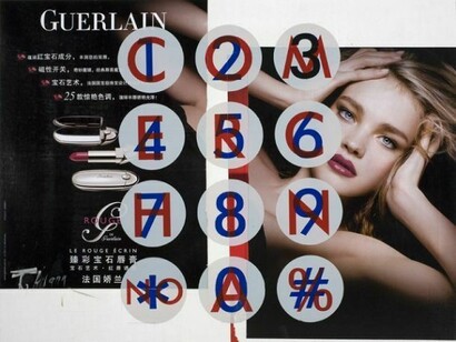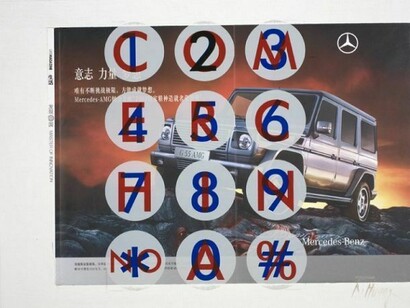 To accompany the RMB work, Huang Rui has composed another series of prints that look at the notion of commercialization. Earlier in 2009, the artist called for submissions of printed material depicting saleable images. These materials serve as base images over which he has silk-screened the layout of a mobile phone touch pad. In 21st century China, the cellular telephone has become a ubiquitous necessity. Often a person will spend an obscene amount of money on a telephone in order to exude an aura of sophistication. The combination of advertisements with this symbol of wealth speaks for the materialistic turn society has taken.