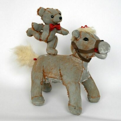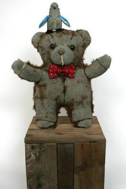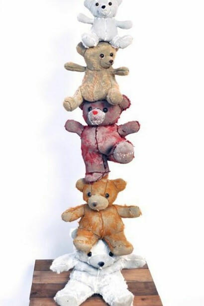 Mined from local thrift shops, these stuffed animals are manipulated to create altered visions that redefine and renew their purpose while maintaining their former significance. Remnants of fabric and fur remain on the concrete surface revealing hidden elements and recorded memories of past physical manipulation and emotional associations of these once beloved objects.