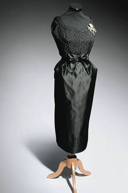 Display highlights include a ‘New Look’ outfit from Dior’s first celebrated ‘Corolle’ collection (spring/summer 1947) and a 1949 black ribbed silk cocktail dress, commissioned by the Duchess of Windsor, Wallis Simpson. Other significant items on display include the first Dior outfit donated to the Gallery of Costume in 1984. The dress, a 1956 black silk cocktail dress, was retailed by the famous Manchester fashion store, Samuels. (Samuels was one of the region’s most important high-end fashion shops until it closed in 1968.)