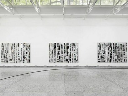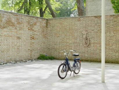 Further works in the exhibition include «windows» – wall-based artworks inspired by the public and religious architecture of the 1950s which recall modernist abstract paintings but are in fact made out of fibre-glass; a collection of flattened musical instruments cast in bronze, hung so as to punctuate the space; and a Piaggio Ciao scooter transformed by its context into a pop ready-made. These apparently nonsequitous elements create a disconcerting and ambivalent effect in which nothing is quite what it seems and all is thrown into question, amounting, in the words of the curator, Giovanni Carmine, to «an elegant discussion on the complexity of defining sculpture».