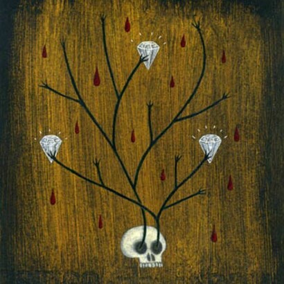 Hannah Battershell is a London based artist whose work spans from miniature paintings on buttons to collages with Japanese papers. Her interest lies in teasing out the narratives to be found in the overlooked or throwaway items encountered in day- to-day life. Scraps of paper, matchboxes, pins and buttons become the main focus of each piece, seemingly insignificant objects are bestowed a talismanic quality. Her gothic leanings and dark subject matters are always tempered by a silly sense of humour, often lending her work the 'quirky exuberance of a children’s story book' (Kate Weir, Spoonfed).Her work has been displayed in various exhibitions including The Royal Academy Summer Exhibition 2011, the 2011 National Open Art Competition and the Macmillan Cancer Support weekend at The Curwen Gallery. Her painting 'Crocodilian' appears in 'Images 36', the 2012 Association of Illustrators' Best of New British Illustration publication.