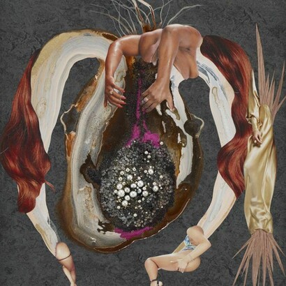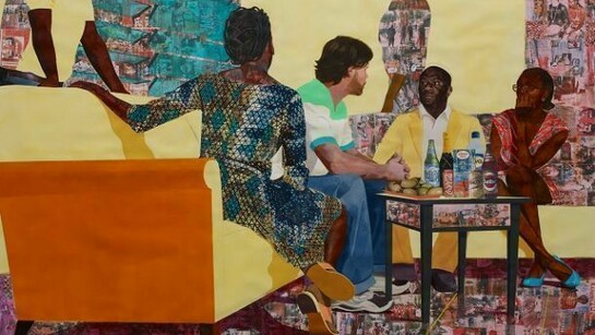 While several of the images in Cinematic Visions appear haunted or suggest heightened states, as in the metaphysical world conjured by Chris Ofili in Ovid-Windfall, 2011-2012, others seem subject to unseen forces or interior compressions. For many artists in the exhibition, the radical language of modernist painting developed during the early twentieth century - of collapsing and expanding picture planes responding to the frenetic pace and fragmentary encounters of modern life - continues to evolve as distortions and mutations of the image take on new permutations with each technological advance. Cinematic Visions examines how, through a variety of painterly strategies and gestures, figuration starts to break down and, conversely, how a residual figurative substratum can be found in even the most apparently abstract image. In Cecily Brown's Sweetly Reminiscent, Something Mother Used to Make, 2013, brush marks and body parts, paint and flesh, begin to dance in a contemporary bacchanal. The cut and splice of Wangechi Mutu's hybrid figures and Inka Essenhigh's sinuous biomorphs, meanwhile, seem to exist on a sliding scale between figuration and abstraction, realism and surrealism.