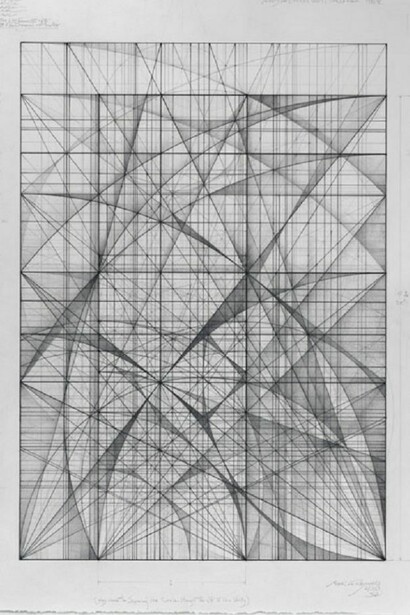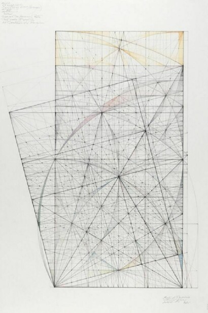 “The nature of geometry is to compose. Each resulting composition is uniquely harmonic by the method in which it was drawn and what was chosen to be the unifying geometric principle for that drawing. Much depends on this original marriage, what specifically was being employed in the geometric construction involved in the union. Certain principles of geometry – ratios, proportioning systems, harmonic resonances or discordances – interface within the relationship. I make it visible by drawing the resulting geometric forms.”