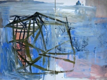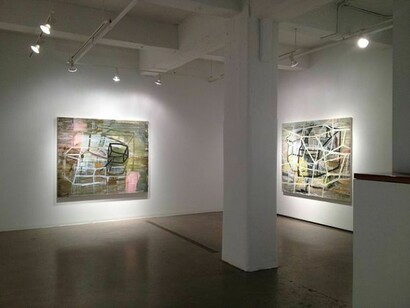 Through her strong sense of composition and the process of abstraction, Dancy is able to translate the still vibrant colors of ancient frescos as they intersect with roaming passages of architecture. There is a constant interchange bearing witness to the pentimento of history alongside the constant shoring of the present. The raking shadows cast from an artist's scaffolding meander amongst wedges of color that are suffused with the aura of idyllic ruins. The structure of these paintings conveys the idea of historical weight as a metaphor for illuminating creative vision.