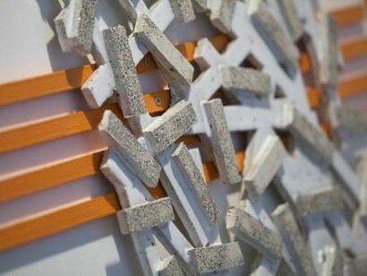 She will be using these signs to structure the arrangement of her extraordinary glazed concrete and wooden artefacts in the gallery space, in order to comment on the architectural framework in which they are sited. Concrete is a material more associated with building than with ceramic art and within this installation it bridges the two areas, combining ideas of structural and poetic form, strength and sensuality.