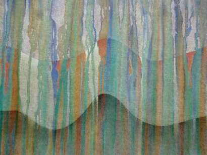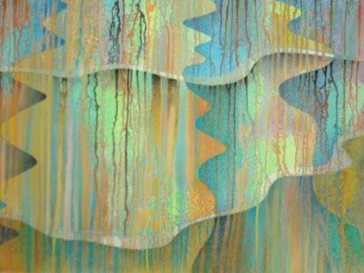 The focus of Cullen’s imagery is water, presented abstractly, with flowing lines that echo the fluidity of water’s movement and currents. His acrylic paintings on wood panels are not large and are described by the artist as “abstract impressionism”. Sometimes he is painting the rhythms of flowing water in such a way that narratives of movement are created and filled with the simplicity of nature abstracted. Occasionally other forms overlay the liquefied tendrils, but always the viewer is confronted with water’s beautifully rhythmic journey.