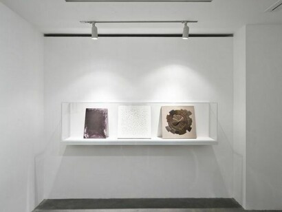 The side gallery focuses on a sequence of exquisite 'Minimes', small, complex works which Hicks has made throughout her practice. These intimate pieces, which she has always woven on the same hand-held Indian wooden frame, reflect memories of places and moments lived over the last eight decades.