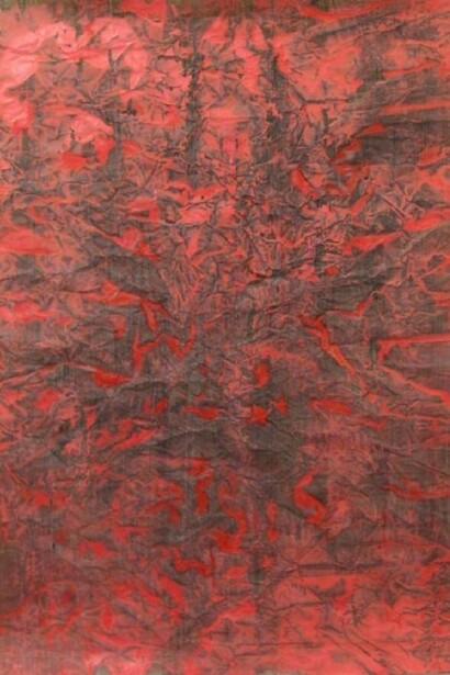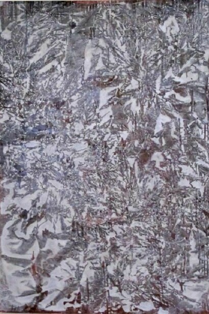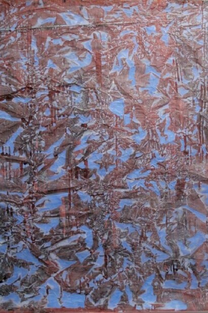Where Trautwein's work might recall certain abstract field paintings of the 60's with densely textured surfaces that build a heavy object in physical form and emotion, his process results in pictures that are light, not labored. He layers paint on found papers, (some being old airport blueprints,) crumples the paper, which reveals random intricate lines and colored shapes and tones. The chaotic but meditative result suggests natures's dual character of delivering tragedy one minute, serenity the next. Simultaneously, Jurgen's work illustrates 21rst century changes in the process of painting.