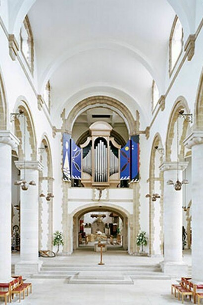 In 2008, on the occasion of the 300th anniversary of the completion of St Paul's Cathedral, Peter Marlow was commissioned by Royal Mail to shoot six cathedrals (Litchfield, Belfast, Gloucester, St David's, Westminster, St Magnus in Orkney). The resulting photographs were issued as a set of 6 commemorative stamps and a miniature sheet. Once the commission was complete however, Marlow was inspired to continue in a similar vein, out of his own interest and in the following four years, he shot the 42 cathedrals of the Church of England – an endeavour that can be placed within the tradition of church photography in England, particularly the work of Frederick Evans and Edwin Smith.