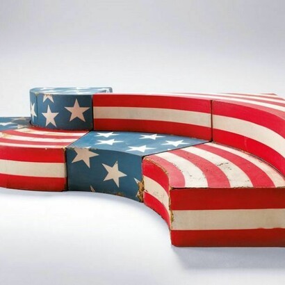 Highlights on show include Robert Rauschenberg’s proto-pop painting Tideline, 1963; Studio 65’s Leonardo sofa which has rarely been exhibited since it was first produced in 1969; James Rosenquist’s I Love You with My Ford, 1961;Judy Chicago’s spray-painted Car Hood, 1964; the monumental floor lamp Moloch by Gaetano Pesce,1970-71; Allen Jones’s provocative Chair, 1969; Joe Tilson’s Page 1, Penelope, 1969; Gunnar Aagaard Andersen’s Portrait of my Mother’s Chesterfield Chair, 1964; The Bishop of Kuban by Eduardo Paolozzi, 1962; and Richard Hamilton’s iconic The Gold Guggenheim, 1965-66. For the London showing at Barbican Art Gallery Pop Art Design will have a greater focus on the significant contribution of British artists and designers to Pop, reflecting a very individual identity in art and design from the 1960s.