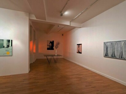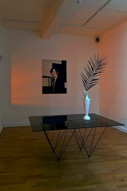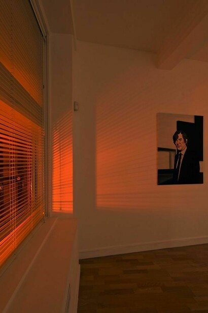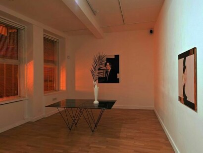 Sodium Vapour Night Light contains paintings and sculpture from a disparate engagement the artist has with both Rainer Werner Fassbinder’s brief foray into science-fiction in World on a Wire (1973), and the notion of the ‘executive’ figure in late-capitalist western commerce. The interest in World on a Wire being a point of reference to the idea of a retro-futurist world where the protagonist is caught in a multi-layered narrative confusion about whether the virtual world he invented is one in which he is the master of, or a prisoner trapped within.
