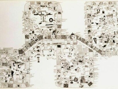 Michael Landy's utterly distinctive graphic production is the foundation of his practice. His drawings function in many different ways: as semi-autobiographical pieces, preparatory or concluding sketches for his large-scale projects and installations, as well as autonomous bodies of work.