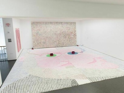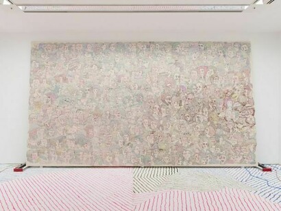 Continuing his tradition of creating artworks with whatever he finds at a particular site, the artist has created a series of portraits for this exhibition based on the patron or sponsor of each of the three discrete areas in the BMO Harris Bank Chicago Works galleries. This includes sculptural busts made of photography backdrop paper, massive carpet paintings, and experimental keyboard paintings on mylar.