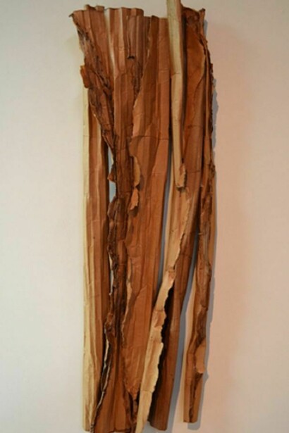 The artist has used cardboard as the primary material for his art since about 1986.