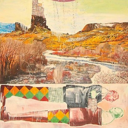 Born 1942, in Kermanshah, Iran and based in New York since 1981, Nodjoumi uses his practice to explore the intersection of his personal history with the politics of alienation and dislocation. Combining historic references, social realist critique and surrealist abstraction, his compositions feature multi-layered human figures engaged with bizarrely counter-poised animals, theatrically staged against indeterminate backdrops and barren landscapes.