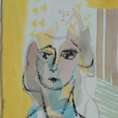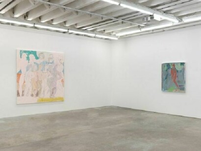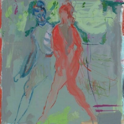 Well, it's more like, history doesn't shape the present, history is shaped by the present. So I don't know if I see it as the impact of art history on my work but that my work sort of freely time travels using the loaded languages of history. For me it's more about our understanding of time and possibility. In terms of painting and choosing a timeframe or a place to start, I've been finding myself drawn to certain motifs, some of which are known more from the history of painting than in any other form of everyday image. Bathers, for example, if you google image search the term, you get paintings that are of bathers. If you google "people taking bath" or "swimmer" you get more stock photography, sports images, entertainment, etc. There is something about certain narratives that arrive to us still primarily on painting's terms. I often choose images from these categories - images about a kind of repetition, whether historical, psychological, or formal. So work I'm looking at recently might include: Charlotte Solomon and Hannah Ryggen at Documenta last summer (and Solomon's show at the Jewish museum years ago was life changing for me), Sonia Delaunay, Marie Laurencin, and what little I can find by Clara Tice. Also the shape shifting easel painters Andre Derain, Max Ernst, and Picabia of course - I'm drawn to artists who are always keeping me guessing about their intentions.