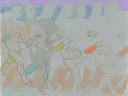 There is no set point for an image to emerge but there may be a certain moment of recognition once an image starts to appear in the process of painting. It's a very open ended process; I like to watch the paintings unfold, the narratives, characters, and abstraction continually shift until I see something that stops me. Then the question is what is it? and what does it want to be? I'm told that this idea of emergence is something that comes out of a complexity, or between systems, which sounds very scientific, but in this case it could be that the resemblances, the figures, the stories, the recognitions emerge from the friction between different ways of painting or imagining representation. There has to be room left to speculate.