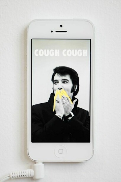 Sophie Jung’s work is a decoding of her environment articulated through her latest burning obsession, Elvis. In her new iPhone presented film He loved Fool’s Gold, a hollow loaf filled with a jar of peanut butter, a jar of grape jelly and a pound of bacon. It had 42,000 calories, 2013, she jogs between exterior and interior worlds mingling her own overdrawn out-there findings with plundered footage, aided and abetted by Elvis’ own equivocal essence. In Oh yeah, 'cause I ain't for no one-sided love affair, 2013, Jung explores Elvive’s camp bathroom impostor, the 60 Second Saviour. Linking the popular hair conditioner’s glamorous appearance to Vegas Elvis’s bell-bottomed body suited cardboard cut-outs, she presents life size photographs of the products, each with their own accompanying audio which casts profane spirituality into the voices of conditioning desire and the desire for conditioning. The slick and seductively false speech of the commodity is appropriated by personal needs and opens up a field of fantasy in which Elvive and Elvis, words and worlds interlock. He lives; Elvive is Elvis’s wet-room wetdream incarnation – his shiny costumes give it away.