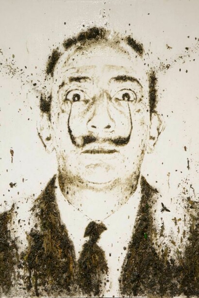 In the exhibition, the artist confronts the power of imagination in figures pertaining to contemporaneity; the “legends” that we honor today for the values and extraordinariness that they were capable of transmitting. The universal icon of Enzo Fiore is composed of creatures suspended between reality and creativity, through the concreteness of a technique that crystallizes fragments of nature and reinstates their lightness. The intention of the artist is to take us beyond, towards a detailed analysis of the body, the anatomic structure and somatic traits of his subjects in such a way that the viewer finds himself in front of a world swarming with insects in continuous motion, as if immersed in a vibrant drama of existence. If at first glance, the image appears to be a painted, almost graphic portrait, at a closer look one is surrounded by and involved with a multitude of forms, of animal and plant entities that bring us back to macro nature in its imposing forms or to micro seen as a manifestation of that which is unique and unusual. An exemplary form of beauty representative of continuous changes in the vitality of communication between matter and energy is the bond instated between Man, Nature and Culture.