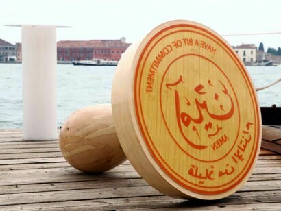 Gharem also collaborates with different communities outside of his performances. For Moujaz (2013), a new work in the artist’s ongoing series of oversized stamp sculptures, he turned to Morocco - a country with a rich history of Islamic art production - to work with their highly skilled craftsmen. Hand-carved by Moroccan artisans, the sculpture is intricately decorated with geometric designs and calligraphic motifs in the Islamic tradition.