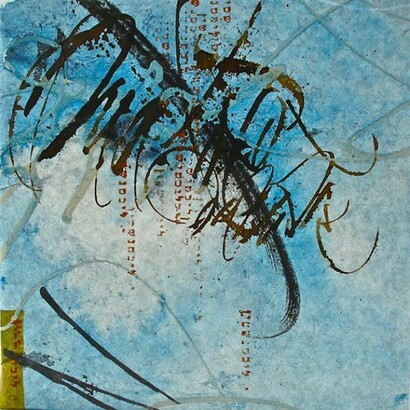 He sums up his own approach to calligraphy as, “…letters become a means to exist outside myself… going beyond the letters, captured by a sole need to see. They become signs, images, evocations, urgent needs, emotions.”