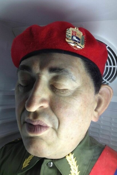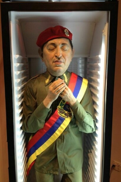 Forever Chavez is the latest of Merino`s series on dictators, which started with Forever Franco.Others in the series include Forever Mao and Forever Fidel.
