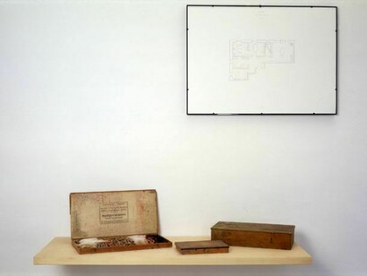 Galleria Milano presents Luca Vitone solo exhibition “Non siamo mai soli” planned and realized in 1994: the show consists in 7 objects and related pencil drawings showing the maps of the apartments where the objects were originally located. The position of the different objects in the room is indicated in red. All objects as well as the spaces belong to the artist’s memory: things he inherited or presents he received, apartments where he lived and grew up.