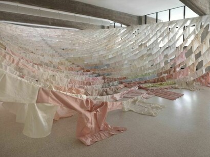 The exhibition also features a video made in 2012 by Beatrice Marchi, Italian videomaker, during the ten days of the installation of the work at Collezione Maramotti by the artist with the help of a team of young women.