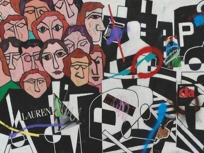 In this show, his focus is on the profiles of people in the city as seen through the windows of urban life. Like Stuart Davis in the 30's, his art contains strong vibes of social activism. He feels the weigh of living with today's pressures to be hard on the people of the world but is conscious of the strength of individuals. Because of his belief in the suffering of the poor and the powers of the super-rich, Kawaguchi uses his paintings to convey a sense of the common man's energy and resilience.